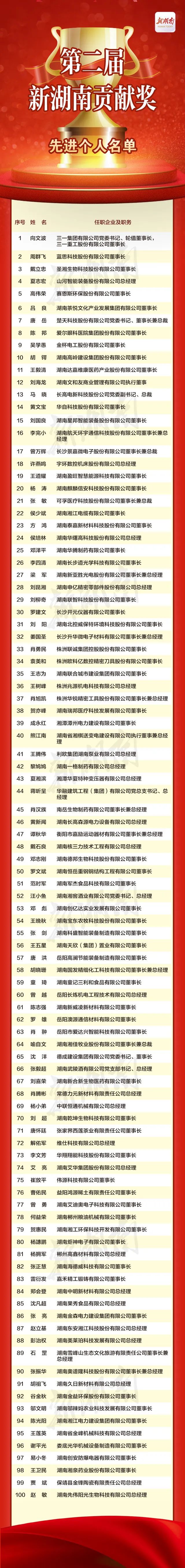 快訊丨第二屆新湖南貢獻獎先進集體和先進個人名單發布